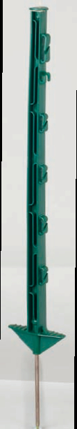 Grüner, stabiler, vollisolierter Kunststoffpfahl mit Eisenspitze u. doppelter Trittstufe. Gesamtlänge 73 cm, Zaunhöhe ca. 55 cm.