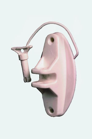 Für Seil und Pferdezaundraht. Montage mit Schrauben. Stift zum leichten Ablegen des Drahtes. Der Isolator muss in Kurven zum Pfosten hin belastet werden.