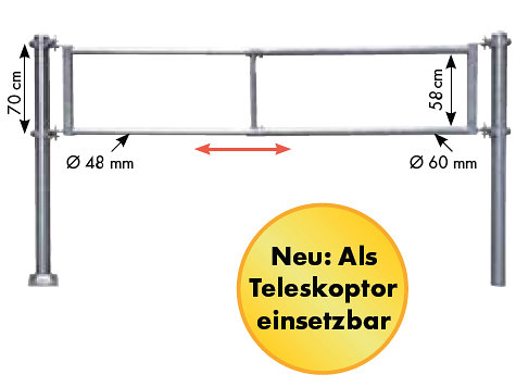 Durch Anbringung eines Schnellerschlusses TS (ArtNr. PA304108) kann die Abtrennung auch als Teleskoptor eingesetzt werden.