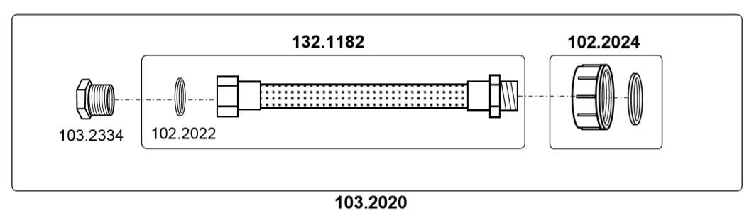 Anschluss-Set für den einfachen Anschluss von SUEVIA Tränkebecken an einen IBC Container bestehend aus:Reduzier-Adapterstück S 60 x 6 auf ¾" IG,70 cm Panzerschlauch ¾" AG/IG,Reduzierung gerade ¾" AG auf ½" IG. Geignet für Niederdruck-Tränkebecken mit 1/2" AG oder 3/4" AG