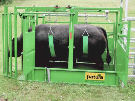 -Klauenpflege: Komfortable Bauchwinde mit doppeltem Bauchgurt, Hinterfußwinde mit Fußgurt, eine Vorderfußwinde mit 2 Adaptern