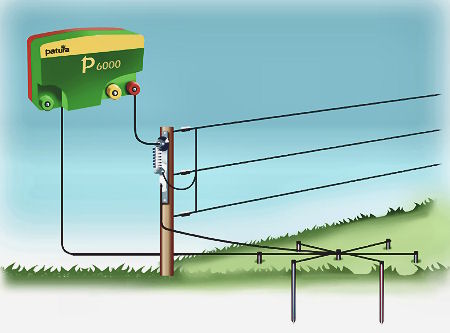 Die Erdung des Blitzschutzgeräts muss mit der Erdung des Weidezaungeräts verbunden werden.