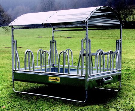 Großballenraufe mit Palisadenfressgitter, Dach und Trog