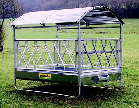 Profi-Viereckraufe mit Schrägfressgitter, Dach und Trog