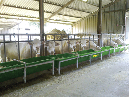 • Anti-Sturzstange verhindert, dass ein Rind in den Trog stürzen kann