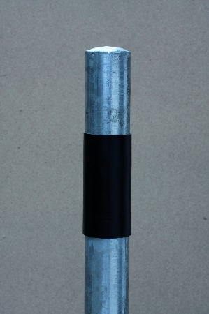 PVC-Schutzhülsen zum Vorwärmen in heißes Wasser legen. Dann auf den Pfosten aufziehen, mit dem dünnen Rand nach oben.
