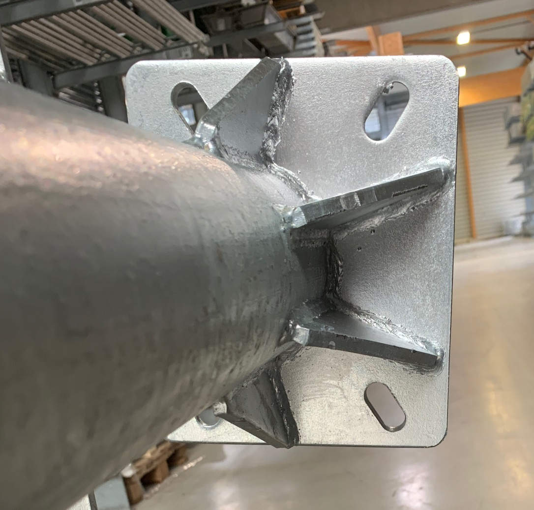 Pfosten d=102 mm, L=1,63 m, ohne Halter mit Bodenplatte außer Mitte, vz
