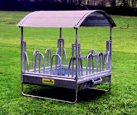 Profi-Viereckraufe mit Palisadenfressgitter, Dach und Trog