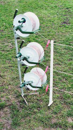 Für bis zu 3 Haspeln 500 oder 600. Haspeln für leichtes Aufrollen bei Kurvenreichem Zaunverlauf leicht abnehmbar. Zaunhöhe bis 1,00 m.