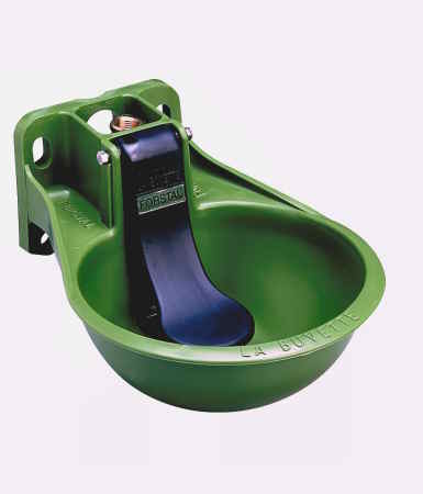 Kunststoffschale, waagrechte Zunge, Wasserregulierung durch Wechseldüsen 2 - 6 bar, Zulauf 15 l / min bei 5 bar, Anschluss 3/4" oben oder unten.
